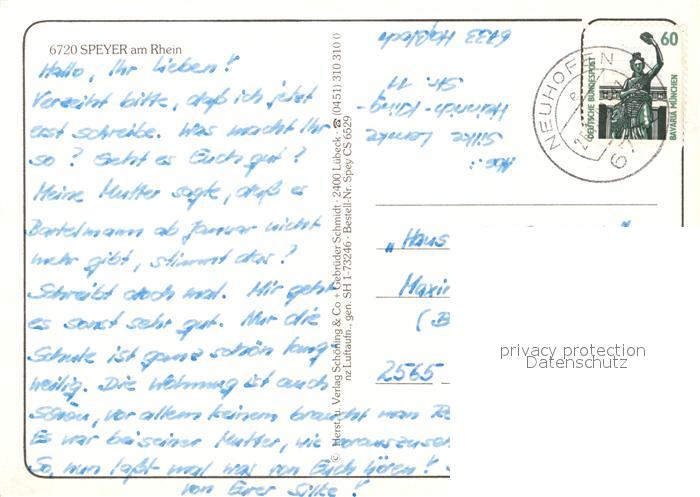 73030534 alte Postkarte Speyer Rhein Fliegeraufnahme postalisch gelaufen Erhaltung siehe scans [KathaD81] KatCode: 11110007318000