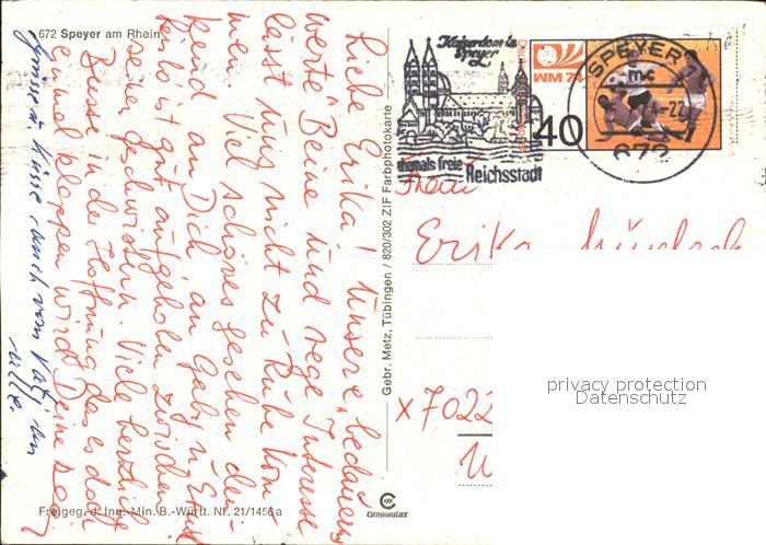 71987902 alte Postkarte Speyer Rhein Fliegeraufnahme postalisch gelaufen Erhaltung siehe scans KatCode: 11110007318000