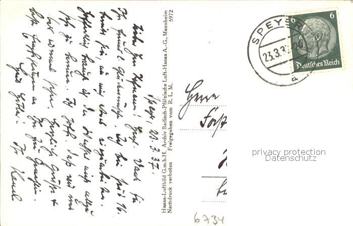 31734711 alte Postkarte Speyer Rhein Fliegeraufnahme postalisch gelaufen Erhaltung siehe scans KatCode: 11110007318000