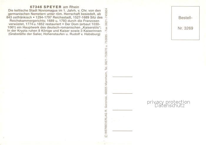 73255268 Speyer Rhein Fliegeraufnahme postalisch nicht gelaufen Erhaltung siehe scans [WerneD78] KatCode: 11110007318000