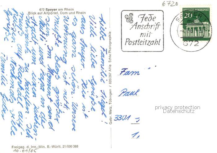 72928140 alte Postkarte Speyer Rhein Fliegeraufnahme Altpoertel Dom Rhein postalisch gelaufen Erhaltung siehe scans [AndreD76] KatCode: 11110007318000