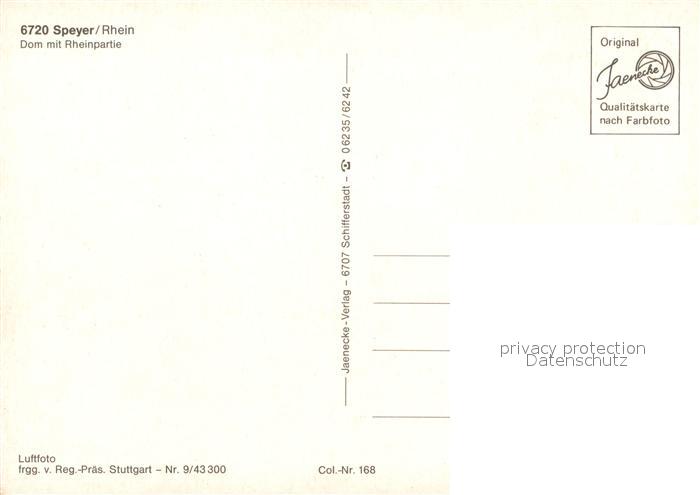 73175633 Speyer Rhein Fliegeraufnahme Dom mit Rhein postalisch nicht gelaufen Erhaltung siehe scans [LiesaD40] KatCode: 11110007318000