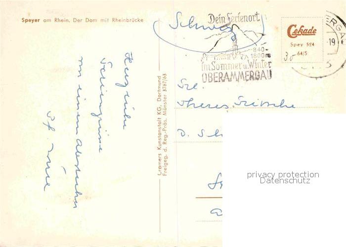 72904489 alte Postkarte Speyer Rhein Fliegeraufnahme Dom mit Rheinbruecke postalisch gelaufen Erhaltung siehe scans [LiesaD40] KatCode: 11110007318000