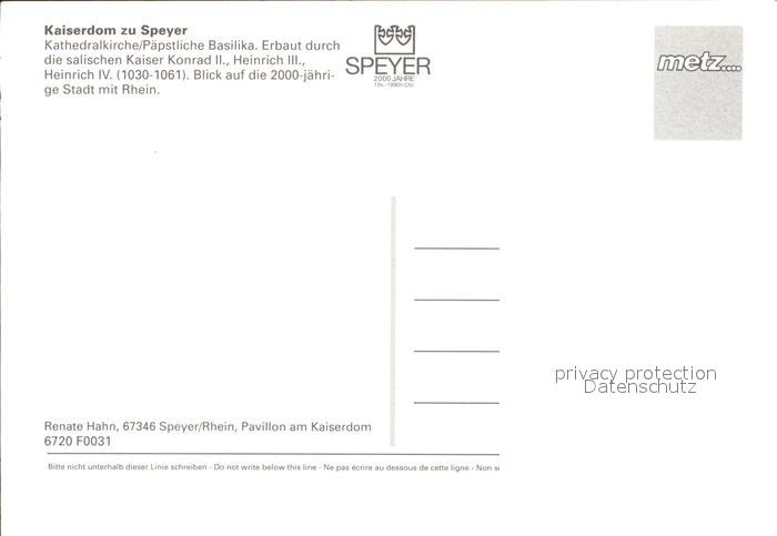 72378706 Speyer Rhein Fliegeraufnahme Kaiserdom postalisch nicht gelaufen Erhaltung siehe scans KatCode: 11110007318000