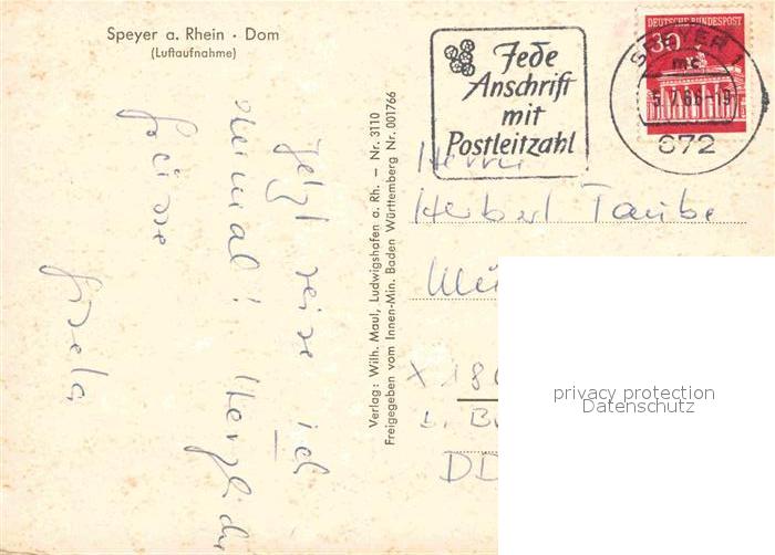 72844873 alte Postkarte Speyer Rhein Fliegeraufnahme mit Dom und Rhein postalisch gelaufen Erhaltung siehe scans [LiesaD40] KatCode: 11110007318000