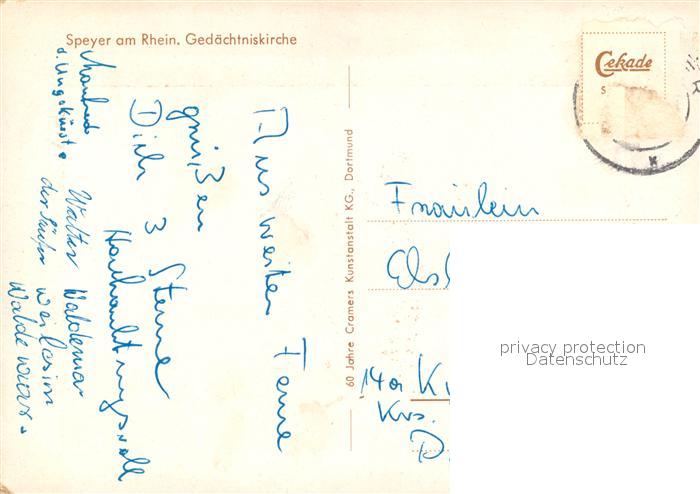 73164526 alte Postkarte Speyer Rhein Gedaechtniskirche postalisch gelaufen Erhaltung siehe scans [KathaD81] KatCode: 11110007318000