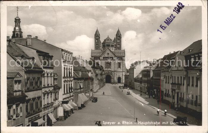 41753837 alte Postkarte Speyer Rhein Hauptstrasse Dom postalisch gelaufen Erhaltung siehe scans KatCode: 11110007318000