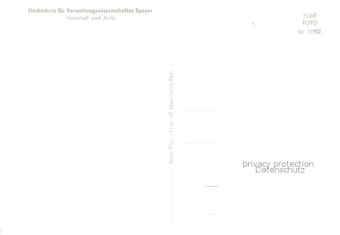 73544605 Speyer Rhein Hochschule fuer Verwaltungswissenschaften postalisch nicht gelaufen Erhaltung siehe scans [WerneD78] KatCode: 11110007318000
