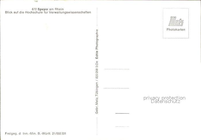 31841577 Speyer Rhein Hochschule Verwaltungswissenschaften postalisch nicht gelaufen Erhaltung siehe scans KatCode: 11110007318000