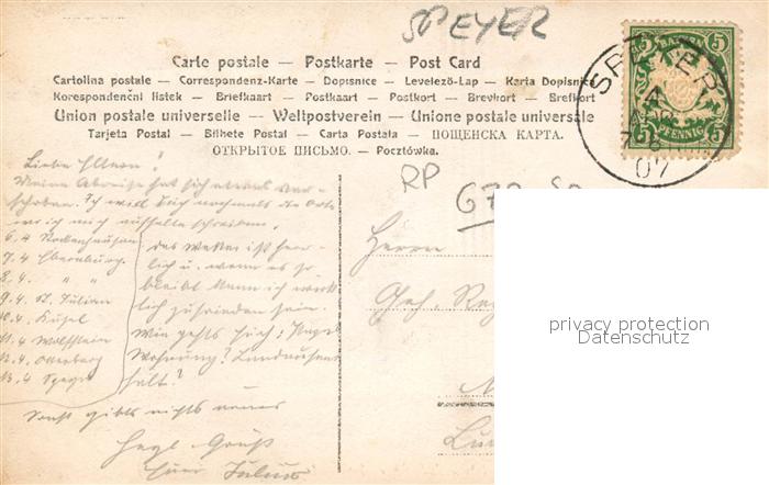 43189889 alte Postkarte Speyer Rhein Huehnerhof postalisch gelaufen Erhaltung siehe scans [FriedD77] KatCode: 11110007318000