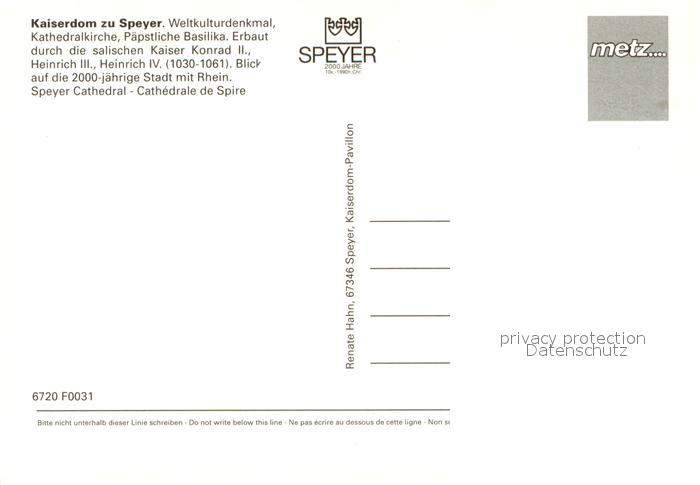73655959 Speyer Rhein Kaiserdom Fliegeraufnahme postalisch nicht gelaufen Erhaltung siehe scans [WerneD78] KatCode: 11110007318000