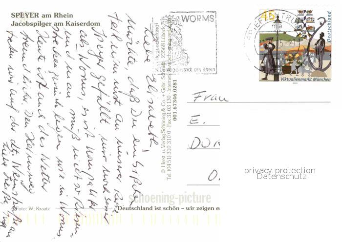 72724973 alte Postkarte Speyer Rhein Kaiserdom Jacobspilger postalisch gelaufen Erhaltung siehe scans [LiesaD40] KatCode: 11110007318000