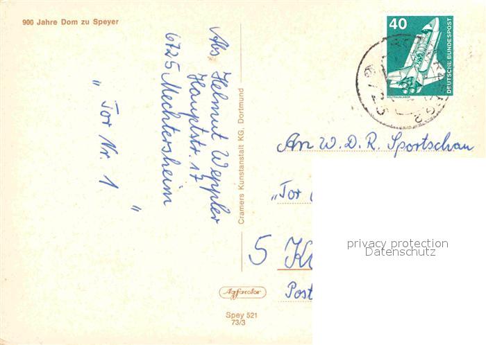 72724192 alte Postkarte Speyer Rhein Kaiserdom Rhein Promenade Bruecke Stadtbad Gedaechtniskirche postalisch gelaufen Erhaltung siehe scans [FriedD77] KatCode: 11110007318000
