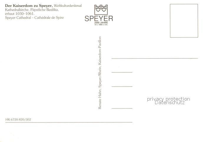 73266023 Speyer Rhein Kaiserdom Weltkulturdenkmal Kathedrale Paepstliche Basilika 11. Jhdt. Fliegeraufnahme postalisch nicht gelaufen Erhaltung siehe scans [FriedD77] KatCode: 11110007318000