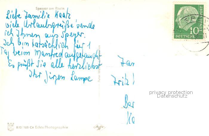 43362415 alte Postkarte Speyer Rhein Panorama postalisch gelaufen Erhaltung siehe scans [WerneD78] KatCode: 11110007318000