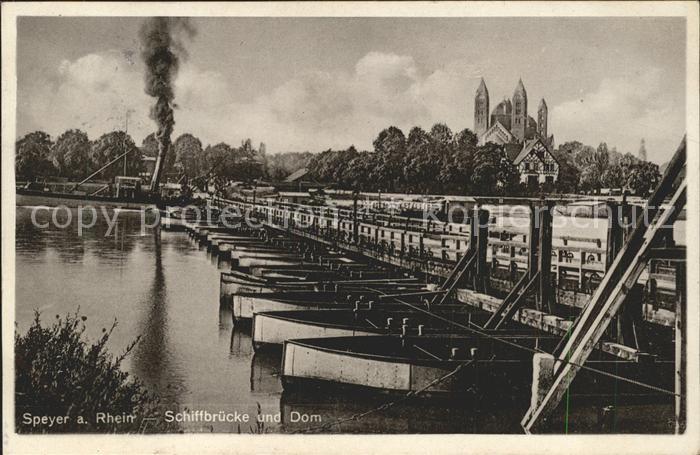 41753868 alte Postkarte Speyer Rhein Schiffbruecke Dom postalisch gelaufen Erhaltung siehe scans KatCode: 11110007318000