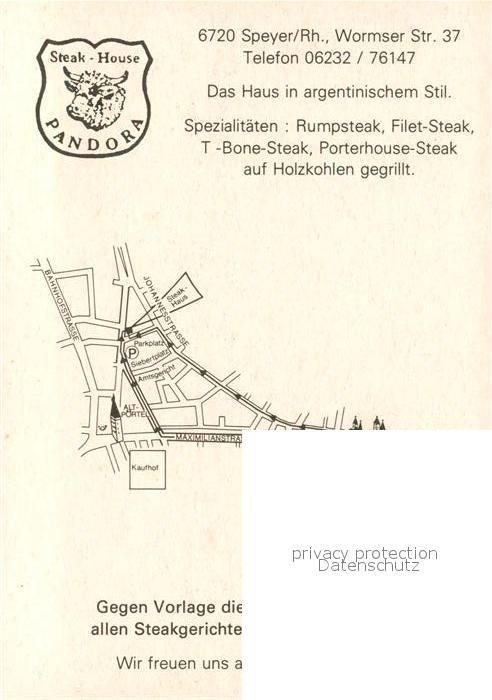 73171295 Speyer Rhein Steakhouse Pandora Restaurant Bar postalisch nicht gelaufen Werbekarte (keine Postkarte) Erhaltung siehe scans [FriedD77] KatCode: 11110007318000