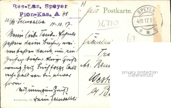 41791332 alte Postkarte Speyer Rhein Zeppelinschulhaus postalisch gelaufen Feldpost Erhaltung siehe scans KatCode: 11110007318000