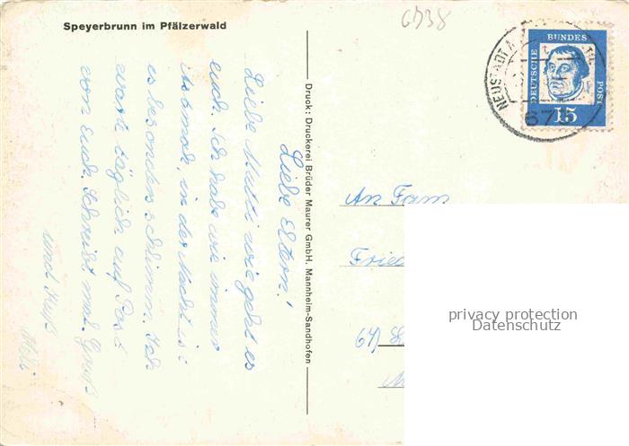 74042356 alte Postkarte Speyerbrunn Elmstein Rheinland-Pfalz Gasthaus Kirche postalisch gelaufen Erhaltung siehe scans [WerneD78] KatCode: 11110007332014