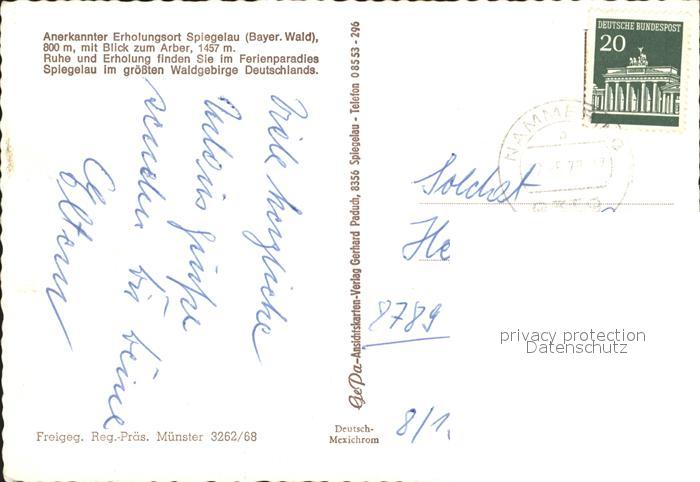 72017118 alte Postkarte Spiegelau Arber postalisch gelaufen KatCode: 11110009272149