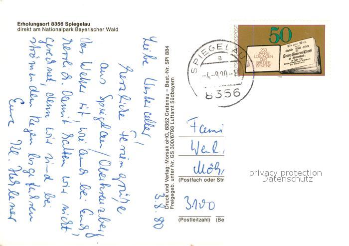 73574413 alte Postkarte Spiegelau Erholungsort am Nationalpark Bayerischer Wald Fliegeraufnahme postalisch gelaufen Erhaltung siehe scans [FriedD77] KatCode: 11110009272149