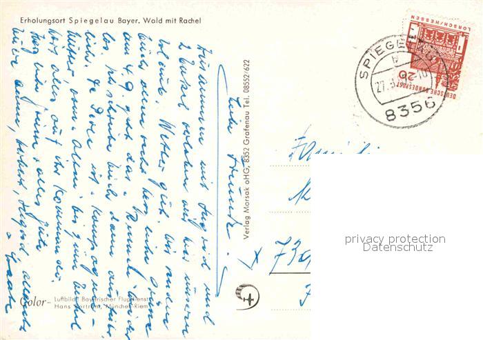 72753307 alte Postkarte Spiegelau Erholungsort Bayerischer Wald mit Rachel Fliegeraufnahme postalisch gelaufen Erhaltung siehe scans [FriedD77] KatCode: 11110009272149