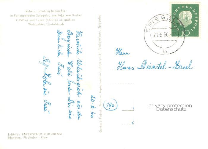 33658485 alte Postkarte Spiegelau Fliegeraufnahme postalisch gelaufen Erhaltung siehe scans [WerneD78] KatCode: 11110009272149
