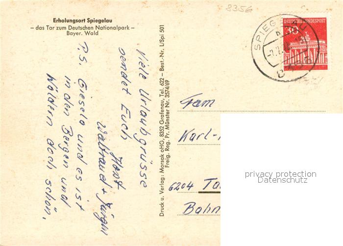 73644014 alte Postkarte Spiegelau Fliegeraufnahme postalisch gelaufen Erhaltung siehe scans [WerneD78] KatCode: 11110009272149