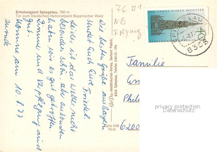 73644010 alte Postkarte Spiegelau Fliegeraufnahme Nationalpark Bayerischer Wald postalisch gelaufen Erhaltung siehe scans [WerneD78] KatCode: 11110009272149