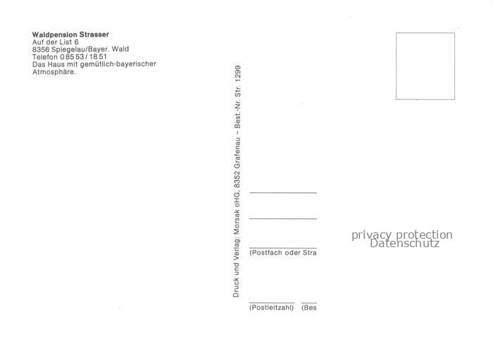 74137419 Spiegelau Freyung-Grafenau Bayern Waldpension Strasser postalisch nicht gelaufen Erhaltung siehe scans [WerneD78] KatCode: 11110009272149