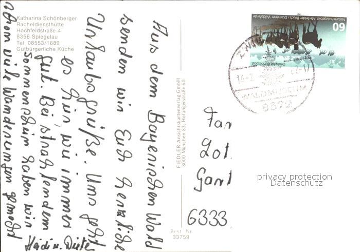 alte Postkarte Spiegelau Katharina Schoenberger Racheldiensthuette postalisch gelaufen Erhaltung siehe scans