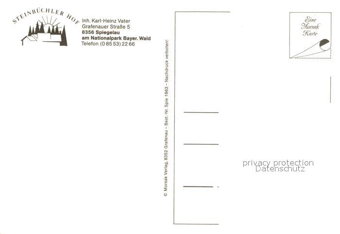 73654760 Spiegelau Steinbuechler Hof Nationalpark Bayerischer Wald postalisch nicht gelaufen Erhaltung siehe scans [FriedD77] KatCode: 11110009272149