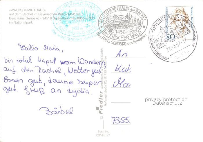 72276678 alte Postkarte Spiegelau Waldschmidthaus postalisch gelaufen Erhaltung siehe scans KatCode: 11110009272149