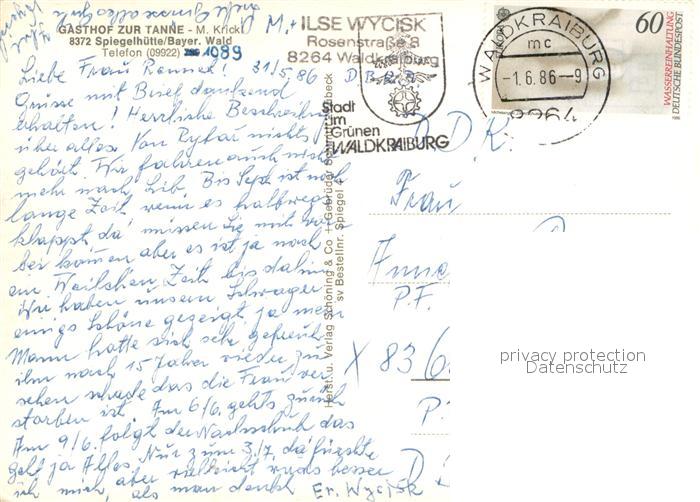 73739734 alte Postkarte Spiegelhuette Gasthof zur Tanne Gaststube Panorama postalisch gelaufen Erhaltung siehe scans [WerneD78] KatCode: 11110009276130