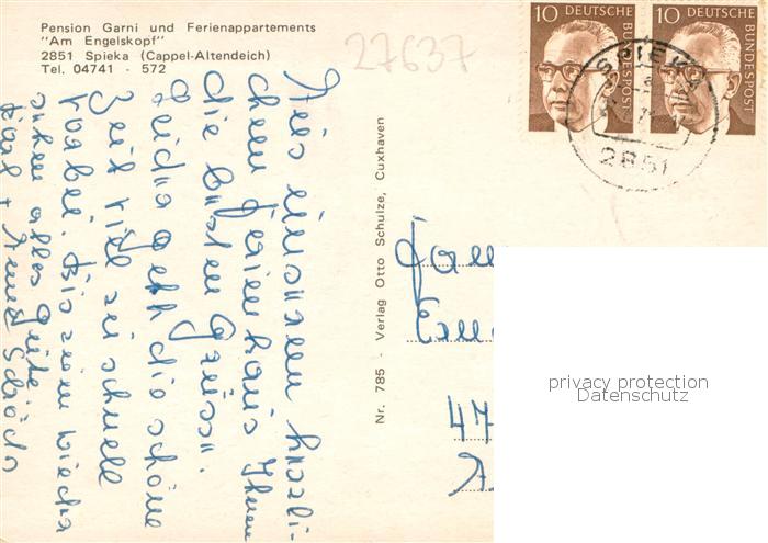 73761952 alte Postkarte Spieka-Altendeich Pension Garni und Ferienappartements Kutterhafen Sonnenuntergang postalisch gelaufen Erhaltung siehe scans [FriedD77] KatCode: 11110003352040