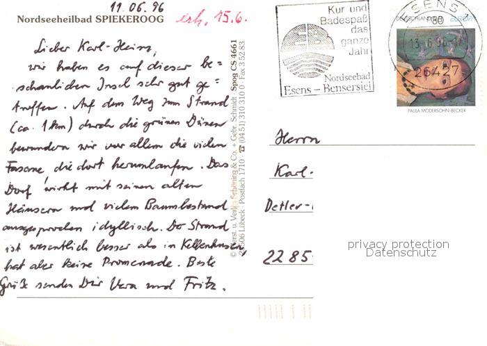 72930561 alte Postkarte Spiekeroog Nordseeheilbad Nordseeinsel Fliegeraufnahme postalisch gelaufen Erhaltung siehe scans [FriedD77] KatCode: 11110003462014