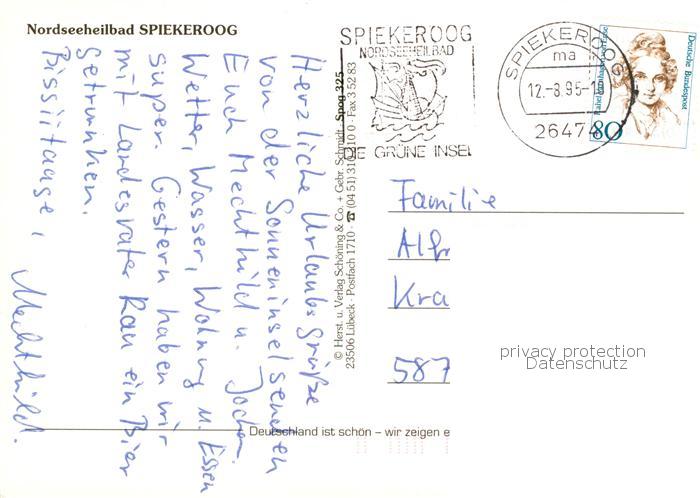 73836109 Spiekeroog Nordseeinsel Luftbild Wappen Duenen Strand Kurgarten Rosengarten postalisch gelaufen Erhaltung siehe scans [FriedD77] alte Postkarte Frie Katcode 11110003462014