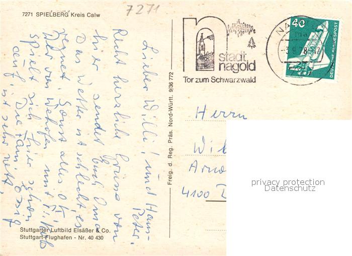 73596465 alte Postkarte Spielberg Altensteig Fliegeraufnahme postalisch gelaufen Erhaltung siehe scans [FriedD77] KatCode: 11110008235006