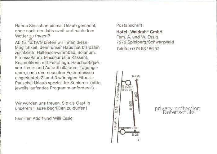 72209218 Spielberg Altensteig Panorama Hotel Waldruh GmbH postalisch nicht gelaufen Werbekarte (keine Postkarte) Erhaltung siehe scans KatCode: 11110008235006