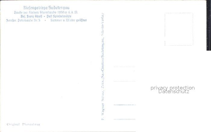 Spindelmuehle Riesengebirge Baude zur kleinen Sturmhaube postalisch nicht gelaufen Erhaltung siehe scans