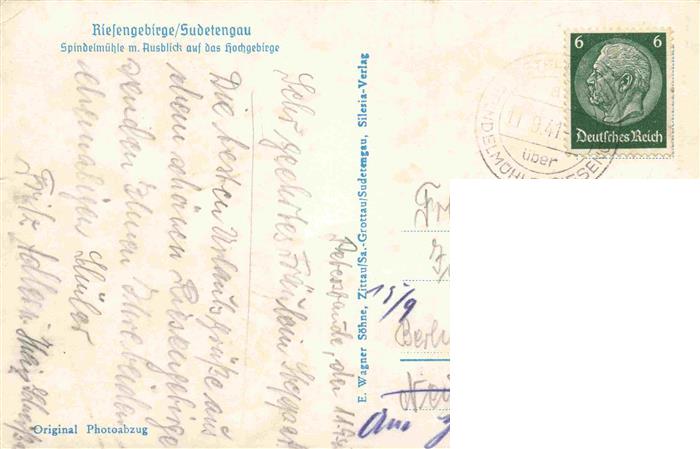 73972835 old postcard Spindelmuehle Riesengebirge Spindleruv Mlyn CZ Panorama mit Ausblick auf das Hochgebirge Sudetengau postalisch gelaufen Erhaltung siehe scans [FriedD77] KatCode: 11520