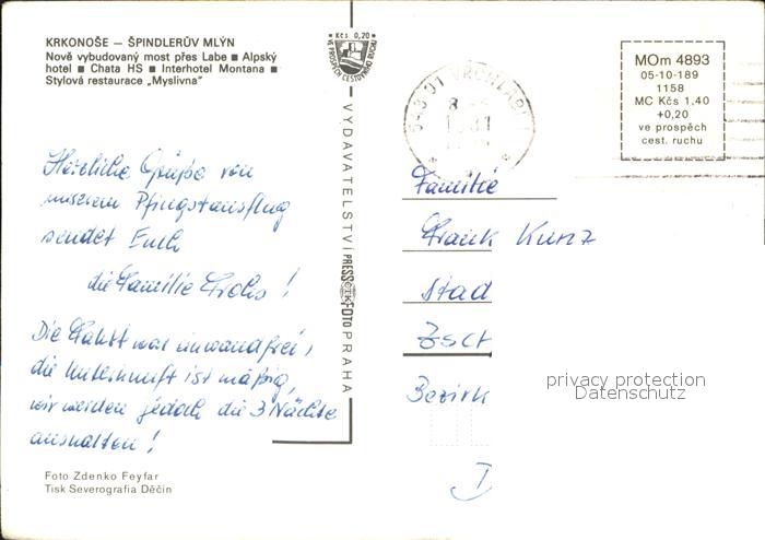 old postcard Spindlermuehle Spindleruv Mlyn Krkonose postalisch gelaufen Erhaltung siehe scans