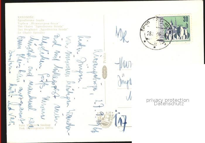 old postcard Spindlermuehle Spindleruv Mlyn Krkonose postalisch gelaufen Erhaltung siehe scans