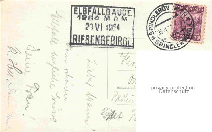74030353 old postcard Spindleruv Mlyn Spindelmuehle Riesengebirge CZ Elbefall Wasserfall Bergbaude postalisch gelaufen Erhaltung siehe scans [FriedD77] KatCode: 11520
