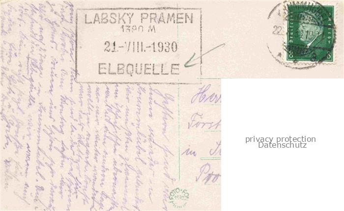74031310 old postcard Spindleruv Mlyn Spindelmuehle Riesengebirge CZ Elbursprung Elbquelle postalisch gelaufen Erhaltung siehe scans [FriedD77] KatCode: 11520