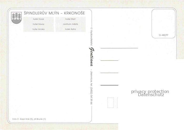 74006027 Spindleruv Mlyn Spindelmuehle Riesengebirge CZ Hotel Horal Hotel Savoy Hotel Arnika Hotel Start Centrum Mesta Hotel Astra postalisch nicht gelaufen Erhaltung siehe scans [WerneD78] KatCode: 11520