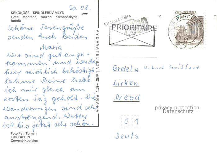74043631 old postcard Spindleruv Mlyn Spindelmuehle Riesengebirge CZ Hotel Montana Restaurant postalisch gelaufen Erhaltung siehe scans [FriedD77] KatCode: 11520