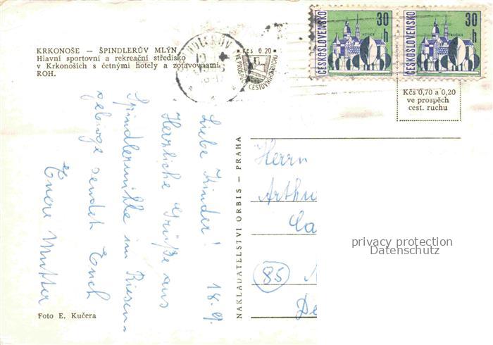 74010082 old postcard Spindleruv Mlyn Spindelmuehle Riesengebirge CZ Rekreacni stredisko v Krkonolich s cetnymi hotely a zotavovna ROH postalisch gelaufen Erhaltung siehe scans [WerneD78] KatCode: 11520