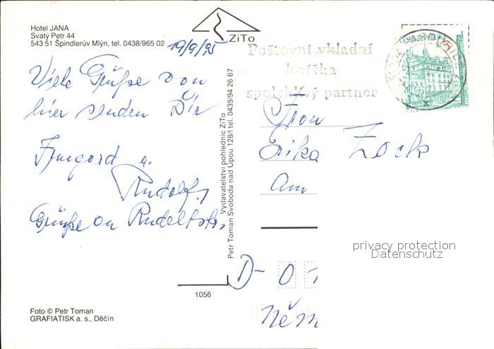 old postcard Spindleruv Mlyn Spindlermuehle Hotel Jana Gastraeume Panorama postalisch gelaufen Erhaltung siehe scans