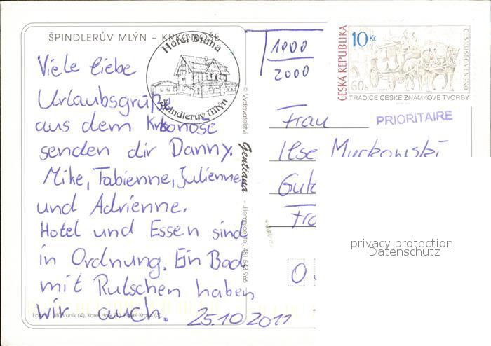 old postcard Spindleruv Mlyn Spindlermuehle Krkonose postalisch gelaufen Erhaltung siehe scans
